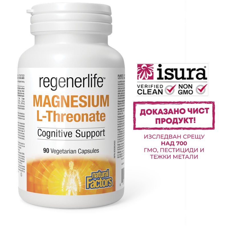 Магнезий L-Треонат за фокус и бистър ум – Стимулатор на мозъчната функция, 144 mg, 90 капсули