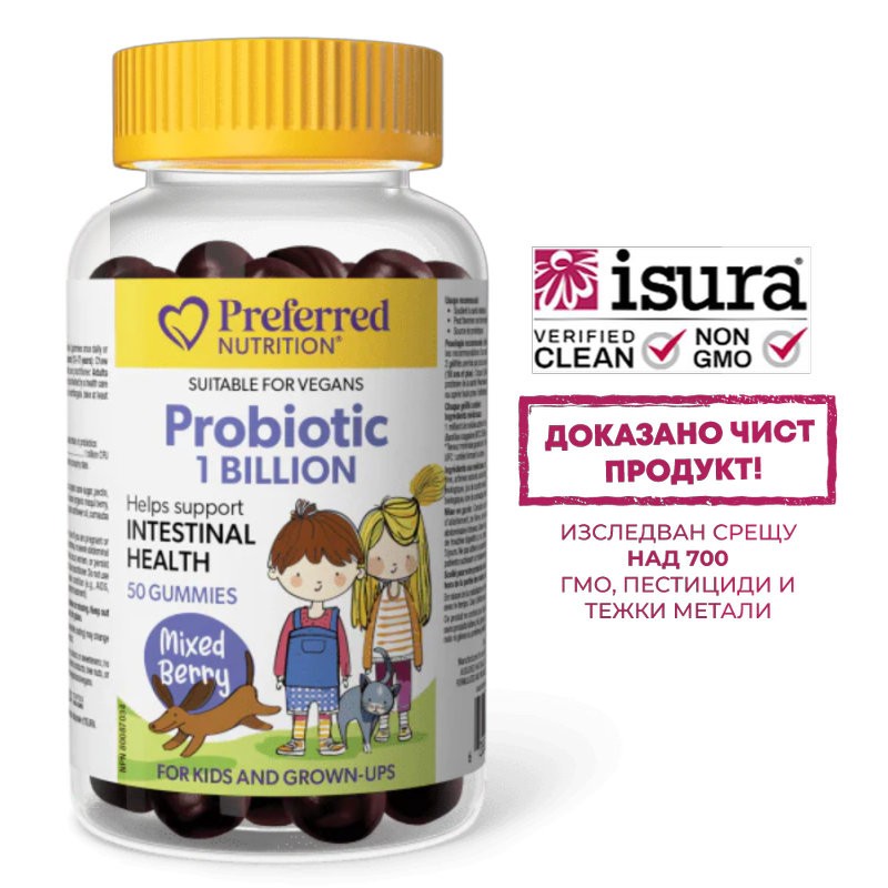 Пробиотик за деца и подрастващи, 1 млрд. активни култури – добро храносмилане и имунитет, 50 желирани таблетки с плодов вкус