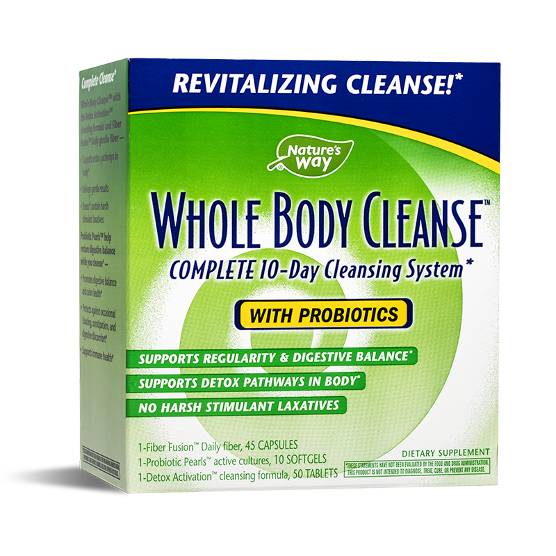 Фибрите играят важна роля за нормалното храносмилане и работата на стомаха. Whole Body Cleanse™ на Nature’s Way съдържа комбинация от разтворими и неразтворими фибри и по този начин подобрява метаболитните процеси в организма. Фибрите помагат за понижаване на лошия холестерол и съдействат за балансирането на кръвната захар. Допринасят за прочистването на червата и пълноценното функциониране на отделителната система.