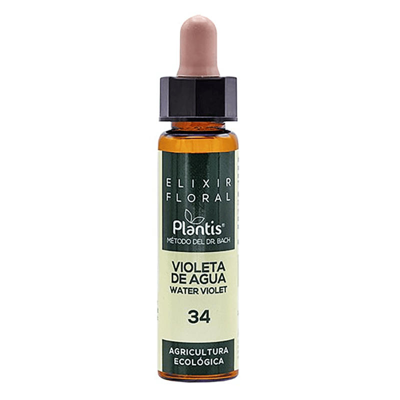 Violeta de agua (Wather Violet) Elixir Floral 34 – Цветен еликсир от водна виолетка е продукт, създаден по методиката на д-р Бах и е част от серията Plantis® на испанската компания Artesania Agricola. Флоралният еликсир от водна виолетка помага на личността да стане по-смирена и по-толерантна към другите. Неутрализира отрицателни емоции като претенциозно превъзходство. Водната виолетка е цветето на комуникацията. Използва се при хора, които са свикнали да държат другите хора на дистанция и са резервирани в общуването.