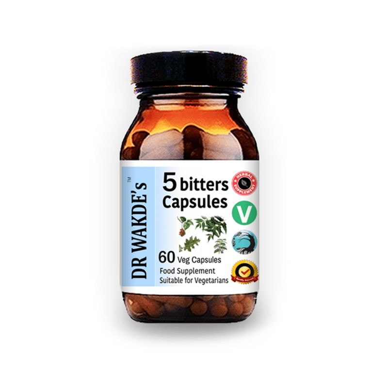 DR WAKDE’S™ 5 Bitters е синергична смес от пет аюрведични билки: стъбло Гудучи, лист Васа, Кантакари, лист Ним и Патола. Те са изключително горчиви на вкус, полезни за здравето и широко използвани в Аюрведа.