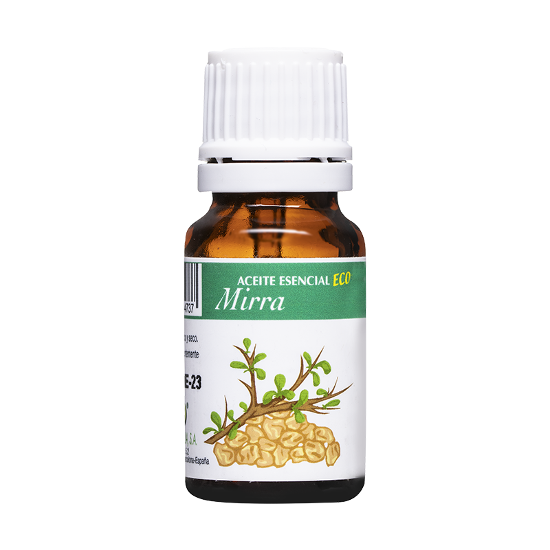 Био Етеричното масло от смирна – Aceite Esencial Eco Mirra има доказани здравословни ползи срещу диария, гингивит, афти, кожни заболявания и енуреза. Подобрява защитните сили и допринася за укрепване на имунната система. Помага за възстановяване на баланса в тялото.