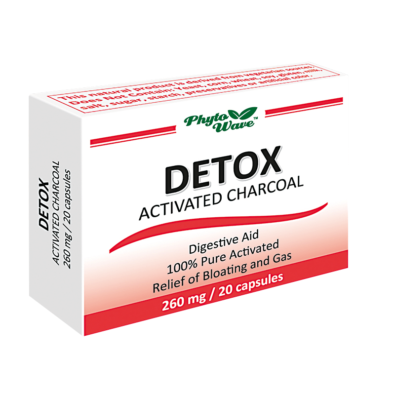 Детокс активен въглен 260 mg х 20 капс – естествен продукт в подкрепа на храносмилателната система.