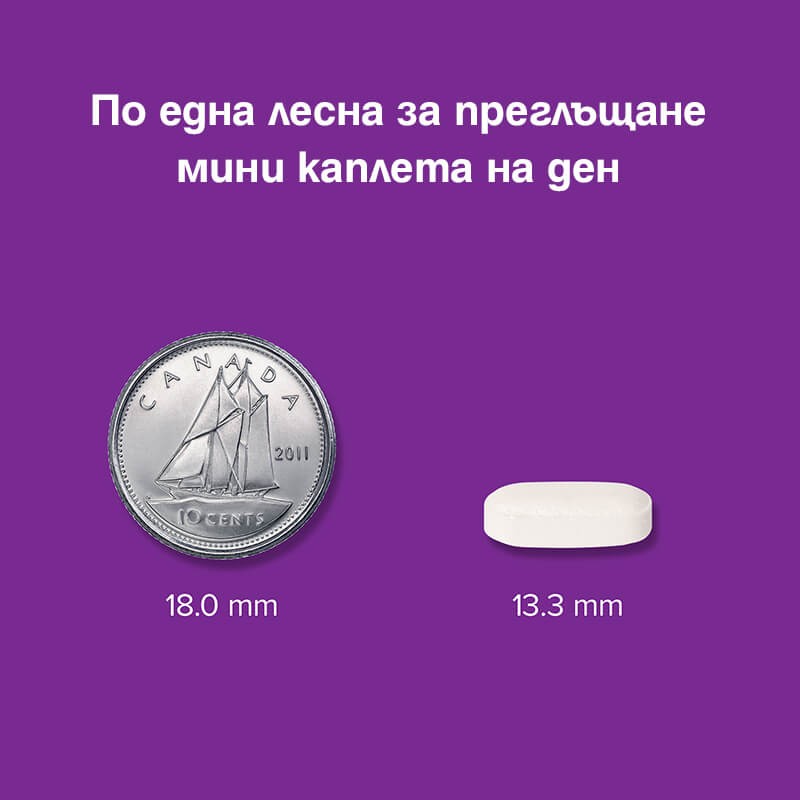 Дозировка: По 1 мини каплета дневно. За оптимални резултати приемайте едновременно с витамин D3 и калций.