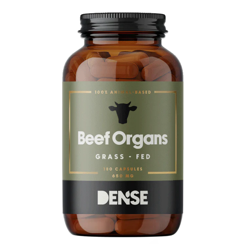 Органите в този продукт на DENSE от пасищно отглеждани и хранени само с трева говеда са в удобни говежди желатинови капсули. Всяка капсула съдържа 50% черен дроб, 25% сърце и 25% бъбреци в лиофилизиран вид (изсушени чрез замразяване) за напълно запазване на хранителната им стойност. Не съдържа хормони, антибиотици и пестициди.