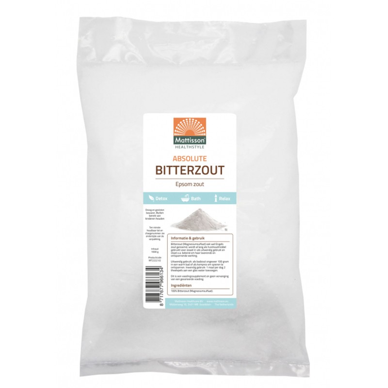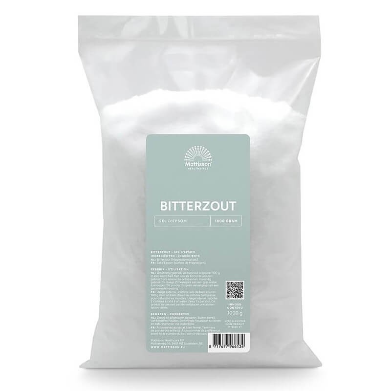 Английска сол (Епсом соли) Магнезиев сулфат 1 кг е висококачествен натурален продукт от портфолиото на холандската компания Mattisson.