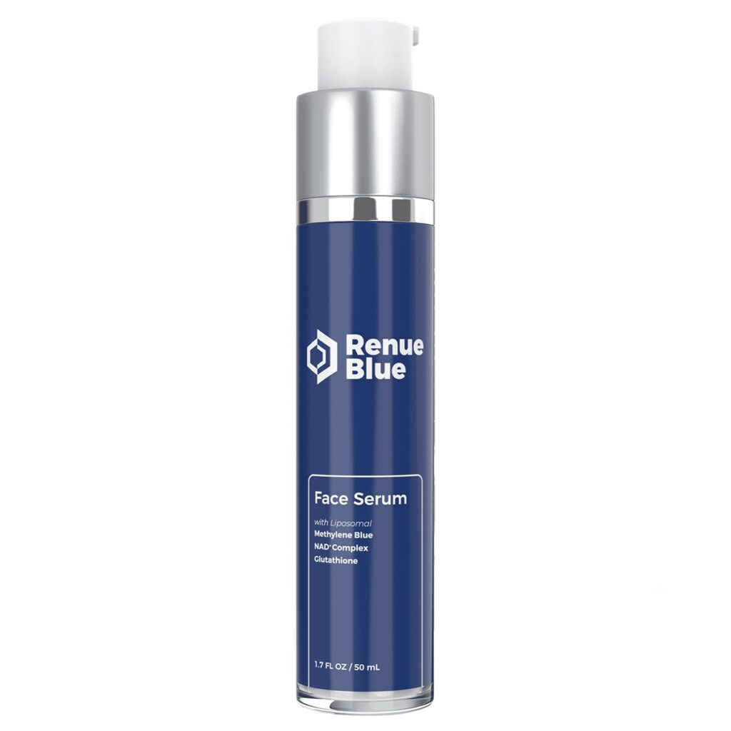 Новата и подобрена формула на Renue Blue Face Serum доставя през слоевете на кожата два пъти по-голямо количество метиленово синьо (в сравнение с други продукти с тази съставка), заедно с липозомни NAD+, NMN, NR, апоцинин, глутатион, алфа-липоева киселина – използвайки революционна нанолипозомна технология. Витамин Е и допълнителните овлажняващи съставки като Helianthus Annuus (от слънчогледов лецитин), гел от алое вера, екстракт от морски водорасли, хиалуронова киселина и лимонена киселина допринасят за отличната хидратация на кожата, оставяйки я след нанасяне нежна, мека и еластична.