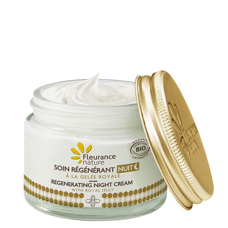 Регенериращ нощен крем с пчелно млечице е изцяло органична козметика на френската компания Fleurance Nature, който насърчава регенерацията на клетките през нощта
