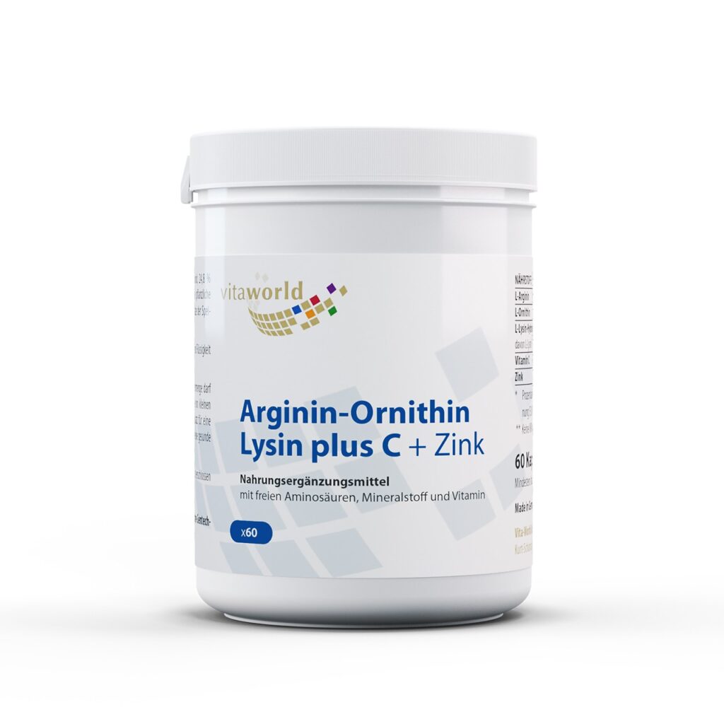 Тази хранителна добавка на марката Vita-World съчетава качествата на три аминокиселини – L-аргинин, L-орнитин и L-лизин, които играят важна роля за нормалното функциониране на човешкото тяло. Комплексът е допълнен в витамин С и минерала цинк, които подпомагат метаболизма и имунната функция на организма.