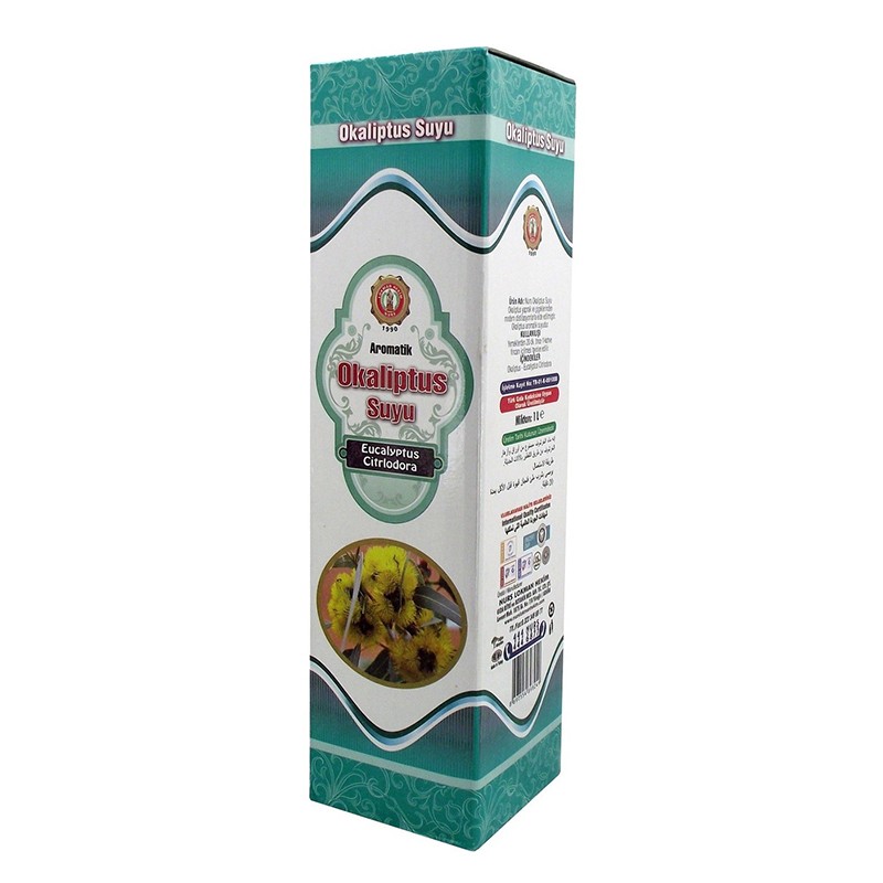 Тази вода съдържа всички полезни свойства на органичните киселини, етеричните масла, горчивините, танините и фитонцидите, на които са богати пресните евкалиптови листа. Евкалиптът е известен със силния си аромат и различни ползи за здравето. Използва се като част от комплексната терапия при инфекциозни и възпалителни заболявания на фаринкса и горните дихателни пътища (фарингит, ларингит, трахеит). Листата му имат изразени антимикробни и болкоуспокояващи свойства. Ефективни са при проблеми с пикочно-половата система и стомашно-чревния тракт. Nursima Lokman Hekim произвежда ароматните води за пиене в собствени лаборатории. Билковите води на компанията са с високо качество и изцяло вдъхновени от природата. Ароматната евкалиптова вода от 1 литър е висококачествен продукт от органично производство без добавки. Препоръчва се консумация по 1 кафеена чаша от водата (около 100 мл) 20 минути преди хранене.