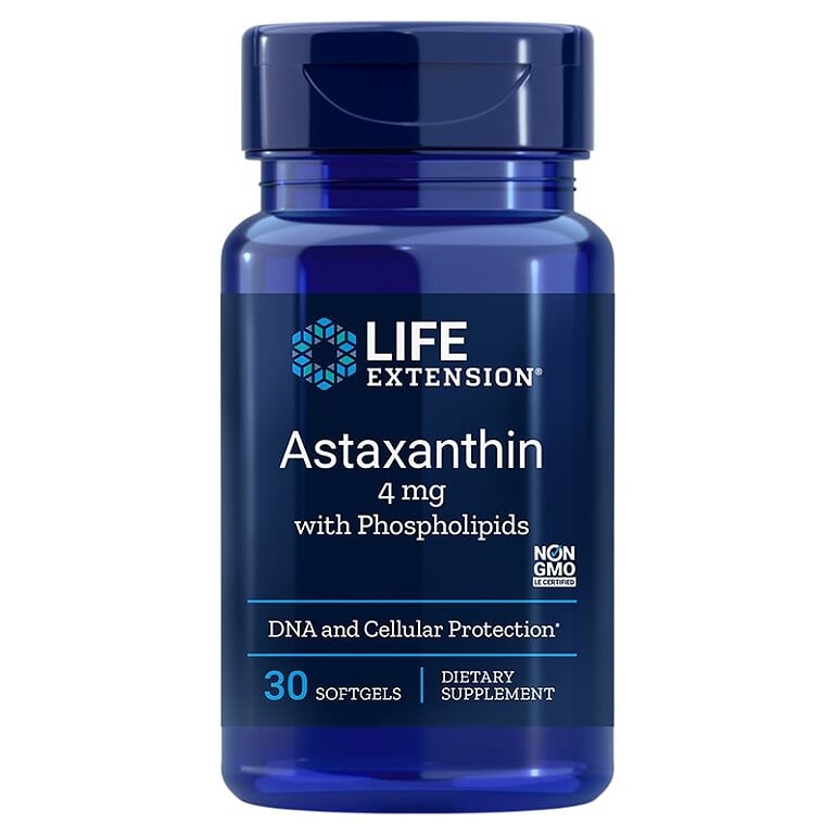 Хранителната добавка на LIFE Extension комбинира астаксантин с четири фосфолипида за улесняване на абсорбцията, насърчаване на здравословното стареене, поддържане на здравето на очите и други ползи за цялостното здравословно състояние. Доказано е, че този иновативен състав повишава абсорбцията на каротеноиди и увеличава максимално антиоксидантните ползи от астаксантин за здравето на цялото тяло.