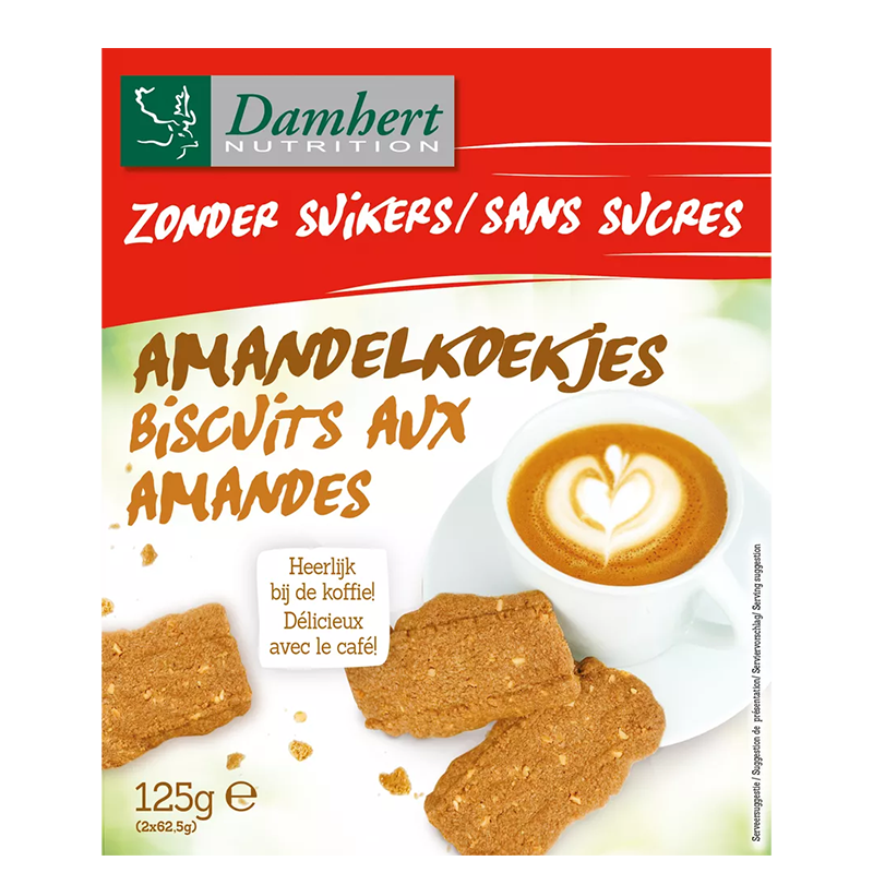 Диета с високо съдържание на добавени захари е свързана с редица здравословни проблеми. В своята концепция белгийската компания Damhert залага на производството и разпространението на функционална, полезна храна с намалено съдържание на въглехидрати и по-малко захар. В резултат на това в рецептата на тези бадемови бисквити, като алтернатива на конвенционалната захар, е включен естествен подсладител – малтитол. Той е нискокалоричен и се усвоява по различен начин от захарта и другите въглехидрати. Това означава по-бавно покачване на нивата на кръвната захар и инсулина, отколкото при глюкозата и захарозата.