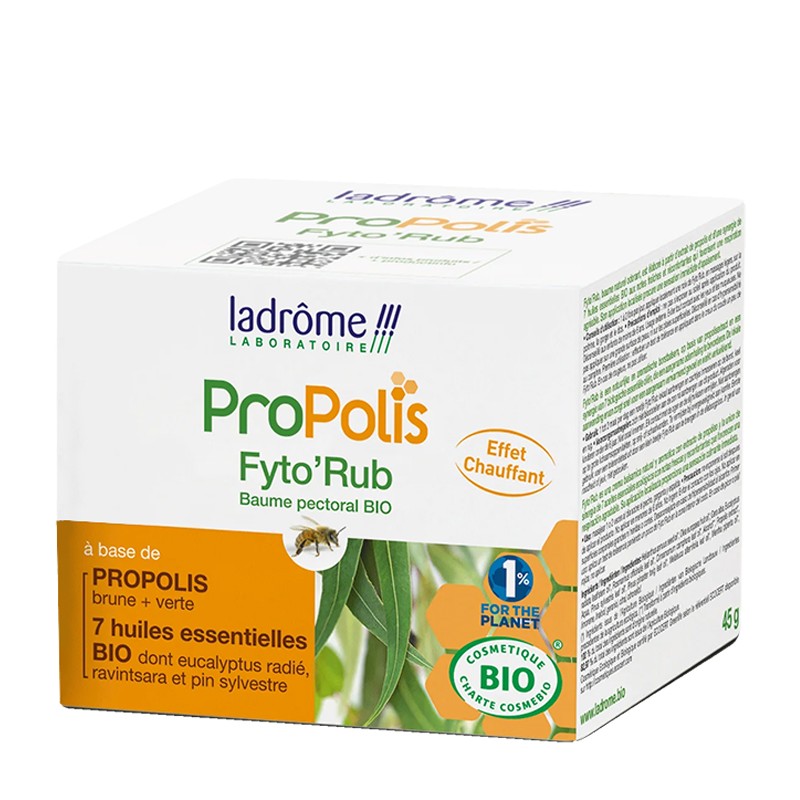 Съставки: прополис*, етерични масла от: евкалипт (лист), розмарин (лист), камфор (лист), равинцара (лист), бял бор, морски бор мента, чаено дърво, екстракт от мащерка, резене, ехинацея *от контролирано био земеделие.