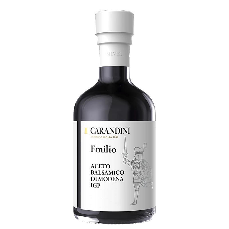 Балсамов оцет Emilio Oro Aceto Balsamico Carandini олицетворява срещата на традициите с иновацията. Той е произведен от италианската семейна компания Carandini, създадена през далечната 1641 г. от семейство Карандини – една от най-старите благороднически фамилии от Модена. Нейната политика за използване на органични суровини от устойчиво земеделие, заедно с прилагане на последните постижения в индустрията, осигурява неподражаем вкус и високо качество на продуктите. Семейство Карандини комбинират вековен опит, предаван от поколение на поколение, с най-съвременни технологии. Съвършеният резултат се дължи на прецизното следене на степента на зреене и бавното стареене в бъчви с различни аромати, които осигуряват божествен аромат и неподражаем вкус.
