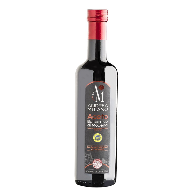Един от най-видните представители на Acetificio Andrea Milano е Balsamic Vinegar of Modena IGP RED LEAF – винен оцет в елегантна бутилка, произведен от внимателно подбрани суровини. Натуралната му формула, позволява получаването на уникален аромат и вкус, които завладяват сетивата и насърчават здравословния начин на живот. Тя е напълно изчистена, без съдържание на оцветители, консерванти и добавени сулфати. Оптималната киселинност от 6% гали небцето и дава възможност за голям набор от приложения. С него можете да приготвяте изтънчена марината за различни видове месо и риба или да го поставите в основата на балсамов дресинг за овкусяване на салати.