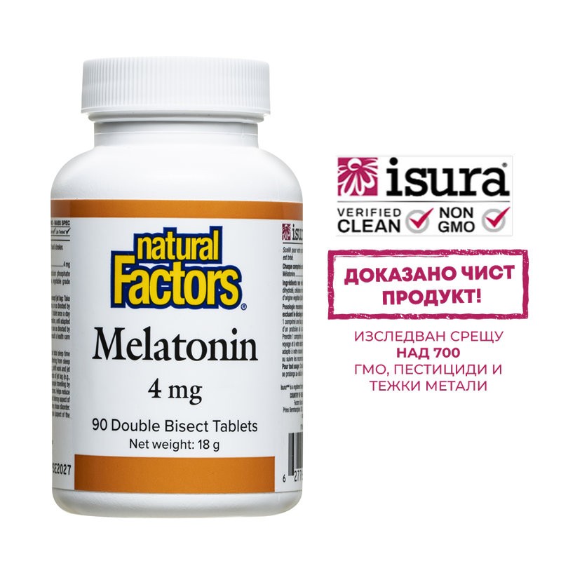 Той помага на тялото да разбере кога да почива и кога да остане будно. Регулира кръвното налягане, храносмилането и растежа на костите. Предпазва нервната система от невродегенерация и намалява проявите на тревожност. Намаленото производство на мелатонин нарушава естествените ритми на организма и тогава е нужно допълването на нужното количество от хормона с прием на специално създадени продукти. Тези продукти са едно от най-популярните средства за нормализиране на съня, но често се използват в дози, многократно по-високи от необходимите. Таблетките Мелатонин 4 мг на Natural Factors са с две делителни чертички за по-удобно разчупване и приемане на доза от 1 мг.