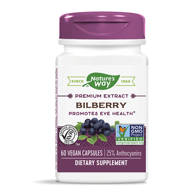 Продуктът на Nature’s Way съдържа два първокласни екстракта, получени от плодовете на черна боровинка и черен бъз, които осигуряват мощна антиоксидантна подкрепа за зрението. Базовият компонент в продукта, осигуряващ най-големи ползи за здравето на очите, е извлекът от плодчетата на черната боровинка, стандартизиран до 25% антоцианини – група съединения с доказани ползи за макулата и ретината, които подобряват нощното виждане и намаляват съдовата пропускливост и чупливостта на капилярите.