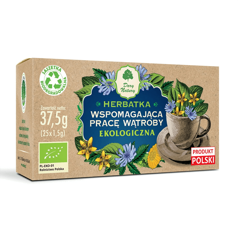 Herbatka wspomagajaca prace watroby EKO е чай с деликатен вкус, който съдържа натурален комплекс от билки, отгледани в условията на биологично чисто земеделие