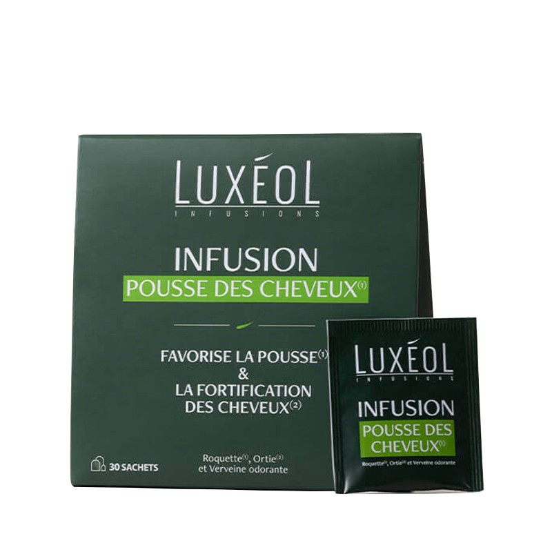 Билковият чай за растеж на косата е 100% натурална формула на Luxéol. Тя е специално разработена за подхранване и укрепване на косъма чрез вътрешен прием на необходимите активни вещества. Чаят съдържа листа от коприва, рукола и лимонова върбинка, богати на витамини и минерали със съществена роля за здравето на косата. Достигането им до организма под формата на билкова инфузия е вкусна алтернатива за всички, които не обичат приема на таблетки и капсули. Активните растителни съставки в чая обогатяват тялото с витамини, част от които стимулират здравето на космения фоликул и ускоряват растежа на косата. За оптимален резултат се препоръчва спазването на 30-дневна програма с консумиране по 1 чай на ден.