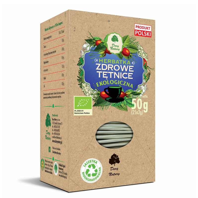 Съставки: плод от шипка (Rosa canina)* 25%, цвят от глог (C. laevigata)*, листа от боровинка*, медуница (Pulmonaria officinalis)*, листа от коприва (Urtica dioica)*, бял равнец (Achillea millefolium)*, майорана (Origanum majorana)*, бобови перикарпи*, имел (Viscum)*, пача трева (Polygonum aviculare)*.