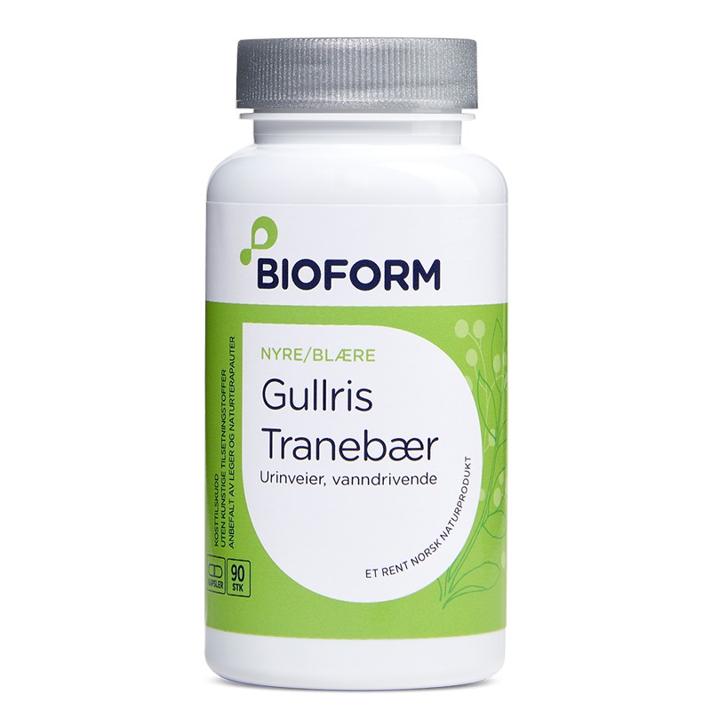 Gullris Traneаr БиGullris Traneаr Билкова формула за Уринарен тракт Със златна пръчица, бяла бреза, червена боровинка и полски хвощ) 90 капсулилкова формула за Уринарен тракт е изцяло натурална хранителна добавка без ГМО, глутен и лактоза. Тя тонизира бъбреците и подпомага активността на пикочния мехур, като успешно защитава пикочните пътища. Намалява интензитета на симптомите при редица заболявания на уринарния тракт и действа имуностимулиращо в предотвратяването на повторната им поява. Формулата е създадена от норвежката компания за органични продукти за здраве Bioform.