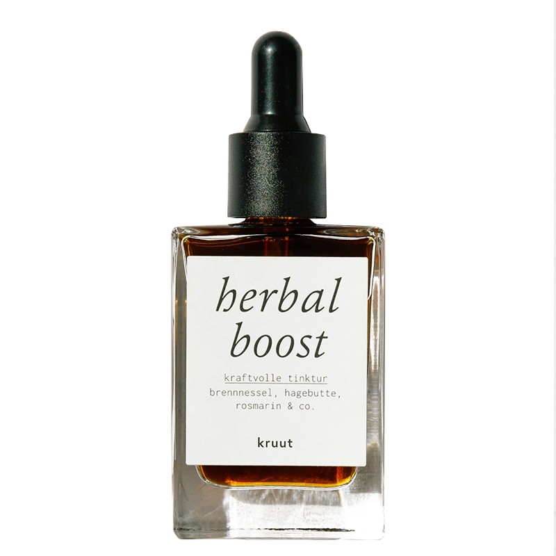 Herbal boost Kruut е билкова тинктура с див риган, коприва, шипка, розмарин и репей, която подпомага енергийния метаболизъм и тонуса на организма. Богатото съдържание на антиоксиданти и витамини от група B допринася за намаляване на възпаленията и насърчава физическата издръжливост.