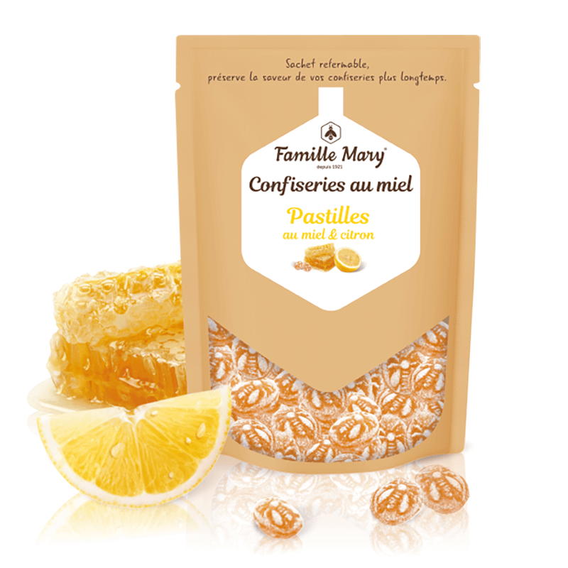 Pastilles au miel and citron са бонбони на билкова основа, с приятен вкус на мед и лимон, които успокояват зачервеното гърло при простуда и грип. Ефективни са при бактериални и вирусни инфекции, грипни епидемии и обикновени настинки.