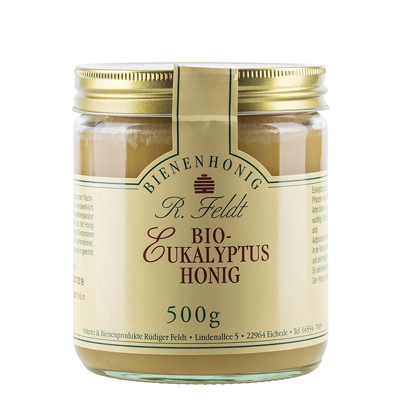 Медът от евкалипт е познат със своите неповторими вкусови качества, но и със своите лечебни и полезни свойства. Bio Eukalyptus honig/ Био пчелен мед от Евкалипт е изцяло натурален продукт, събран от некрата на евкалипта, който има кремообразна и нежна текстура, а на вкус леко напомня на разтопен карамел. Той се кристализира бързо, а след това вкусът му става още по-наситен. Освен чудесния си вкус, този продукт притежава и доста полезни за организма вещества като Витамин C, витамини от групата B, калций, мед, желязо, магнезий, селен, фосфор и др.