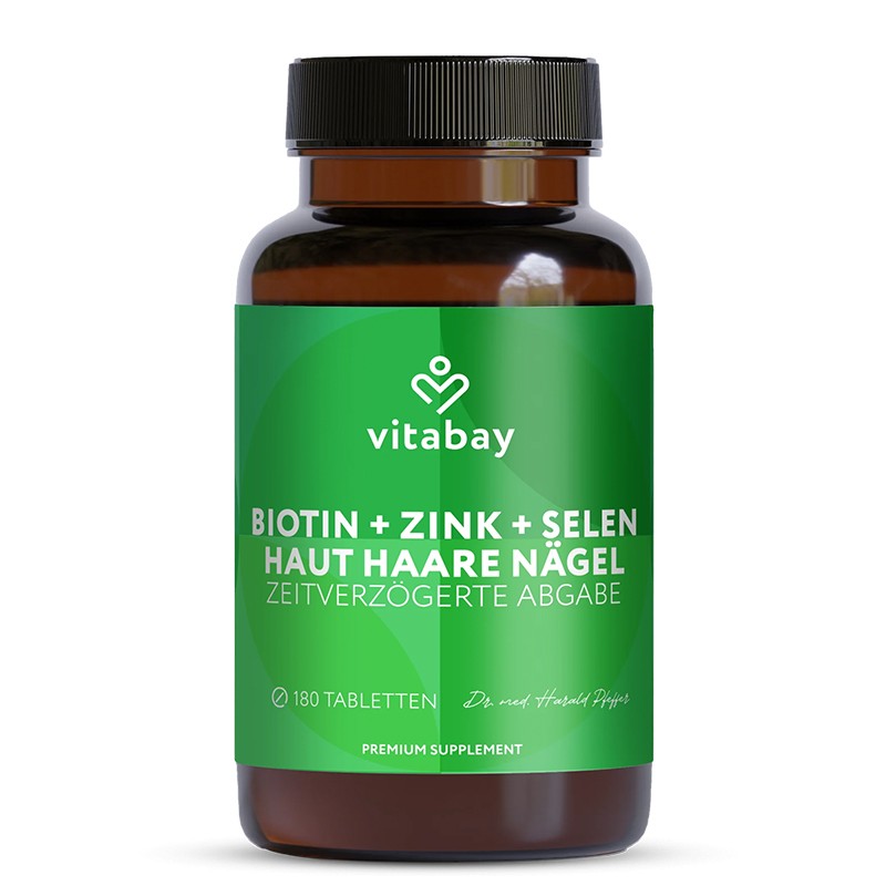 Биотин 10 000 µg + Цинк + Селен – Коса, кожа и нокти, 180 таблетки