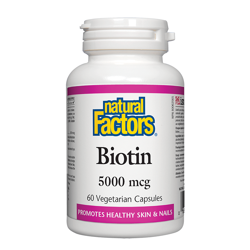 Продуктът на Natural Factors доставя мощни дози биотин в растителни капсули. Този водоразтворим витамин играе жизненоважна роля за здравословния метаболизъм и разграждането на мазнините, въглехидратите и протеините.