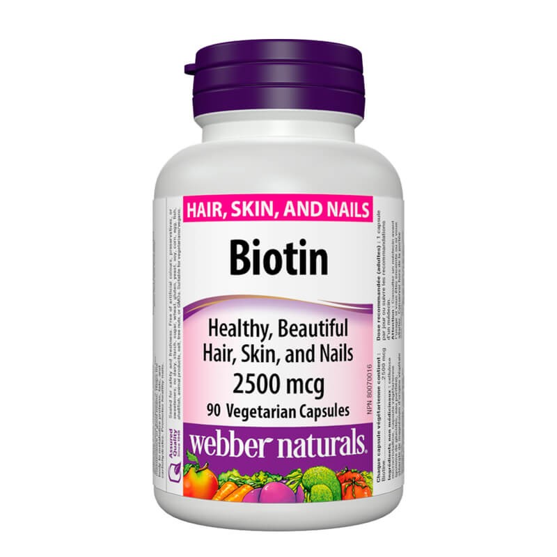 1 капсула от биотиновата добавка на канадската компания Webber Naturals осигурява 2500 mcg оптимално усвоим биотин. Продуктът НЕ съдържа глутен, ГМО, изкуствени подсладители и оцветители, консерванти. Предлага се под формата на лесни за прием вегетариански капсули.