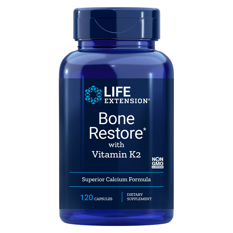 Bone Restore + Витамин К2 на Life Extension е висококачествен продукт, съдържащ калций, витамини К2 и D3 и важни минерали като магнезий, бор, цинк и силиций. Спомага за нормалното състояние на костите и зъбите.