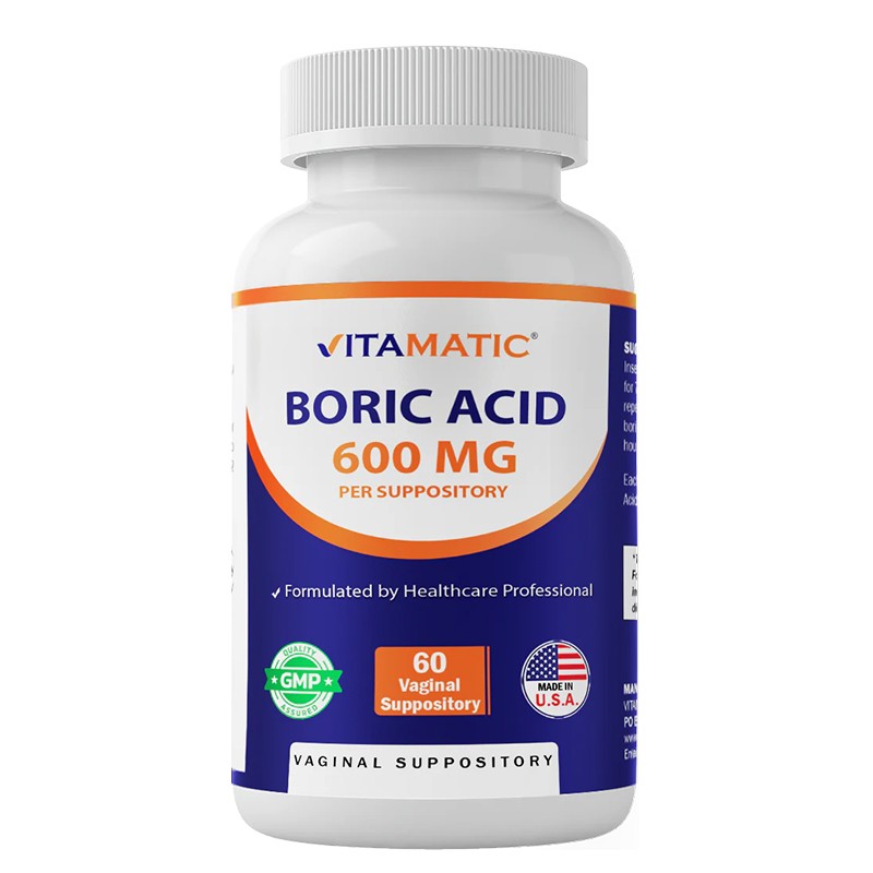 Boric Acid 600 mg е продукт, предоставящ борна киселина под формата на вагинални супозитории (свещички). Той е предназначен за локална вагинална употреба и се използва традиционно за подпомагане на нормалното състояние на вагиналната флора чрез възстановяване на здравословно киселинно pH ниво в областта.