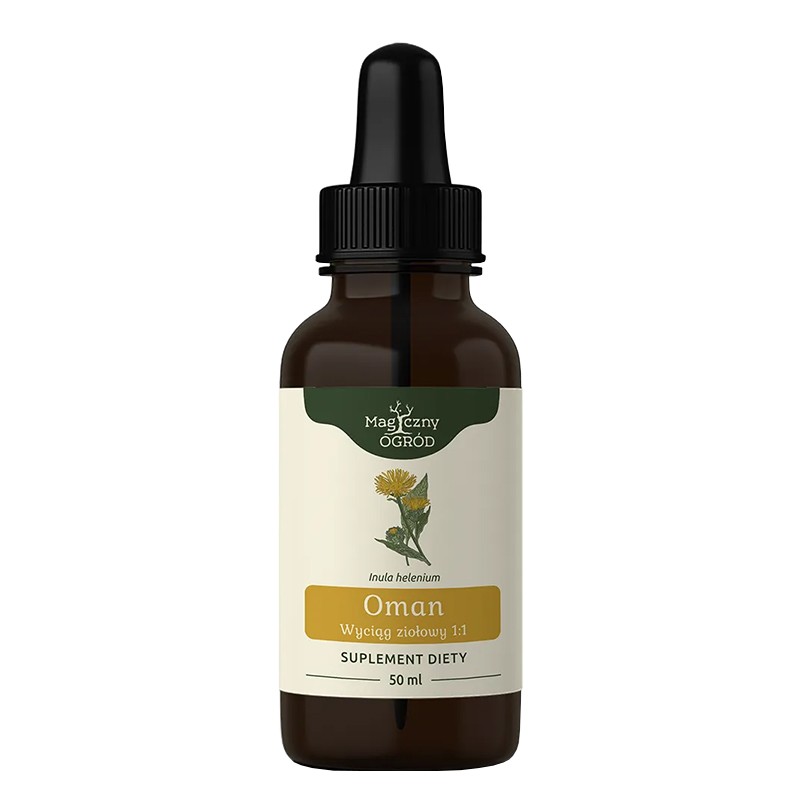 Oman wielki wyciąg ziołowy – Бял оман 50 ml е хранителна добавка под формата на тинктура, която съдържа в състава си екстракт от билката бял оман