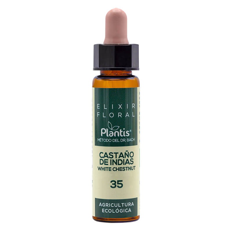 Castaño de indias (White chestnut) Elixir Floral 35 – Цветен еликсир от конски кестен е продукт, създаден по методиката на д-р Бах и е част от серията Plantis® на испанската компания Artesania Agricola. Еликсирът от конски кестен помага на хората да се освободят от натрапчивите и нежелани мисли, които понякога обсебват съзнанието им. Възвръща спокойствието, носи вътрешен мир и покой. Конският кестен е цветето на душевния мир.