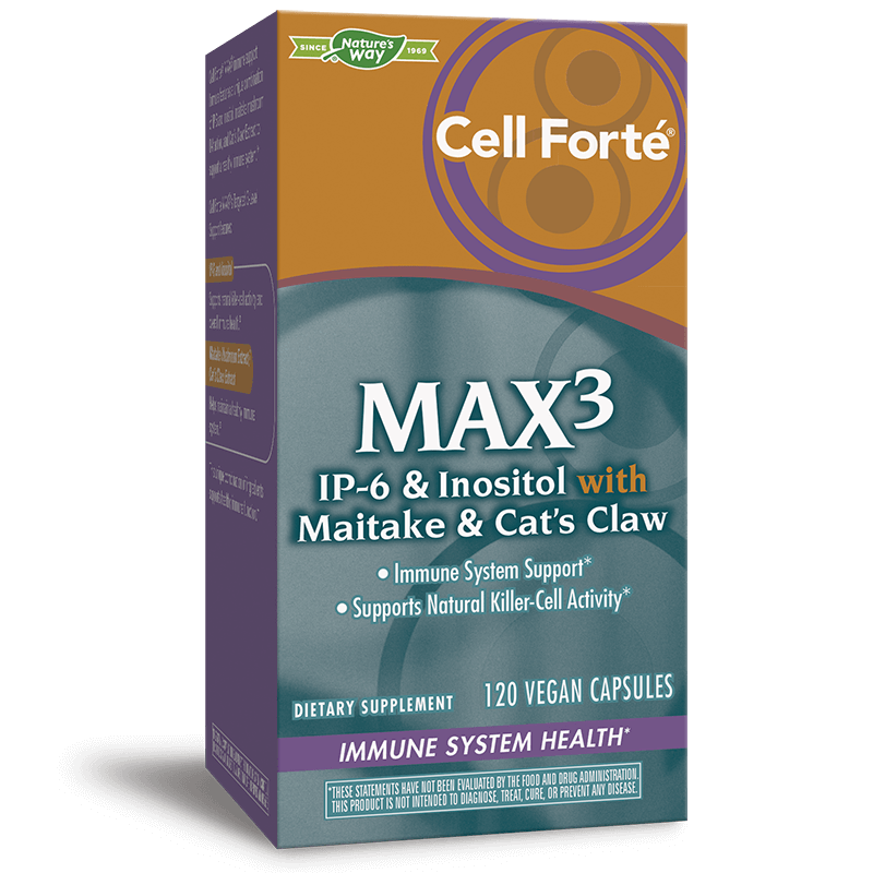 - Инозитолът и неговият хексафосфат (IP6) са естествено съдържащи се фитохимикали в пшеничния и оризовия зародиш, в слънчогледовото семе и в други ядки и семена, където се намират под формата на калциево-магнезиеви соли и се наричат фитин или фитати. В Cell Forte® Max са вложени максимално пречистени инозитол и IP6, за да не се нарушава абсорбцията им от други вещества, съпътстващи ги в храните.