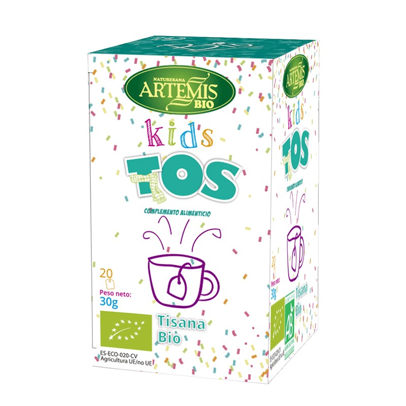 Чаят за деца Kids Tos Tisana е балсамова растителна смес, внимателно подбрана за омекотяване на гърлото и успокояване на раздразнени дихателни пътища. Комбинация от растения с доказани терапевтични качества и контролиран био произход е адаптирана за употреба от най-малките. С една чашка Kids Tos Tisana детето получава вещества, които действат противовъзпалително и превантивно срещу вируси и бактерии. В състава са включени екстракти от добре познати на народната и стандартната медицина растения: мащерка, копър, слез, портокал и евкалипт.