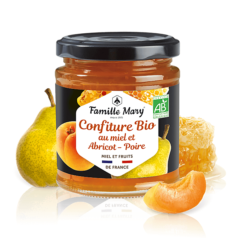 Ако ароматът на плодов конфитюр е един от любимите ви спомени от детството, припомнете си го с Confiture bio miel abricot poire – Био конфитюр от кайсии и круши с мед. С този продукт френската медоносна къща Famille Mary поднася истинска гурме изненада на многобройните почитатели на натуралните й продукти, като съчетава изкусителни за сетивата усещания – приятната сладост на меда с нежното ухание на кайсии от Прованс, неповторимият нюанс и лека тръпчивост на круши от долината на река Рона с освежаващите цитрусови нотки на лимоновия сок. За допълнителна сладост в конфитюра е добавена тръстикова захар, която е на почит сред диетолозите и се препоръчва при здравословен режим. С нея се запазват килограмите и здравето на хората, защото има нисък гликемичен индекс. Тази захар може да се приема от страдащи от диабет, но тези с тип 2 трябва да внимават.