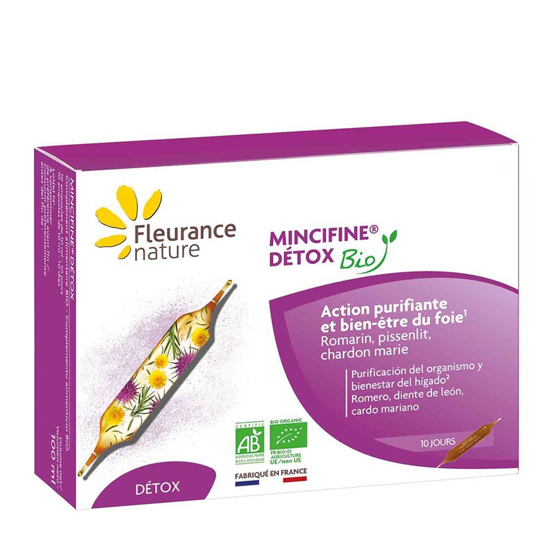 Органичните детокс ампули Mincifine® на френската компания Fleurance Nature съдържат концентрирани екстракти от розмарин, глухарче и бял трън, които работят в хармония, за да поддържат процесите на детоксикация на тялото, да повишават енергийните нива и да подобряват цялостното здраве и жизненост
