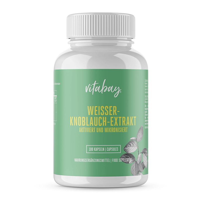 Белият чесън е считан за най-полезният зеленчук на Земята, имащ силата на природен антибиотик. Той убива микробите и токсините в тялото, повишава имунитета и е отлично средство за превенция срещу грип и сезонните настинки. Полезен е за всички органи и системи в човешкото тяло. Weisser Knoblauch Extrakt на немския производител Vitabay съдържа концентриран екстракт от натурален бял чесън. Приемайки капсулите, усвоявате всички лечебни качества на чесъна и в същото време запазвате свежия си дъх, тъй като капсулите са безвкусни.