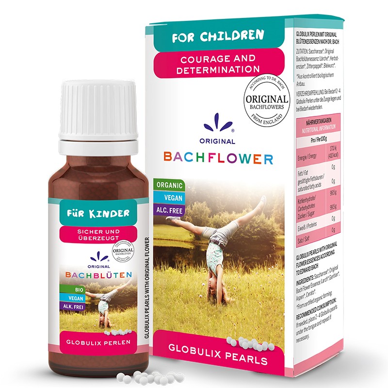 Този продукт е предназначен за деца с потиснато настроение, страхове и други емоционални проблеми и ще помогне срещу развиването на стереотипи в ранна детска възраст, които остават за цял живот. Есенциите на д-р Бах действат внимателно и постепенно по отстраняването на емоционалните проблеми и връщането на детето към състояние на спокойствие и комфорт. Във формулата на тези глобули са включени есенции от цветовете на трепетлика, тинтява, лиственица и други растения, които, според наблюденията на д-р Бах, допринасят за повече вяра и смелост, за по-добра интуиция и правилна реакция. Продуктът е Био, веган и без алкохол.