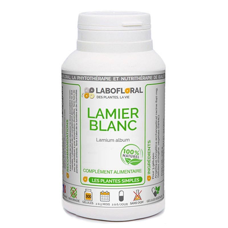 Lamier Blanc от PhytoMoinsCher е висококачествена хранителна добавка с чист прах от цветове и върхове на бяла мъртва коприва, дозиран в 100% растителни и натурални пулулан капсули. Със своите спазмолитични, диуретични и хемостатични свойства бялата мъртва коприва може да допринесе за: