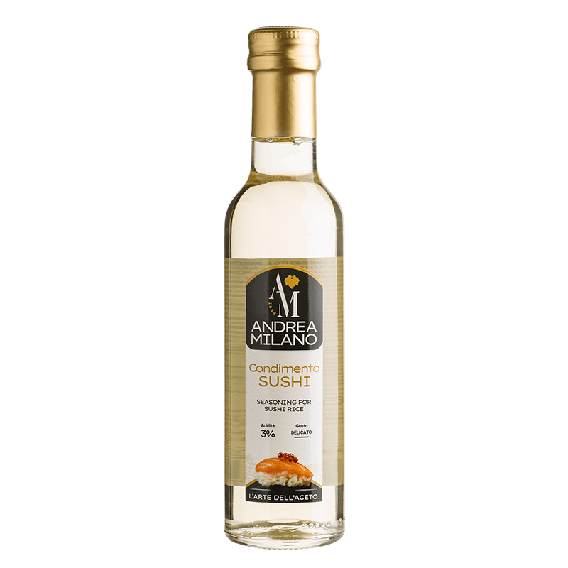 Суши дресингът Andrea Milano е вид оризов оцет с ниско киселинно съдържание. Има светъл сламен цвят и е особено мек. Използва се за приготвяне на суши, като се добавя при готвене на ориза. Освен това, често намира приложение при приготвяне на дресинги за зеленчукови салати. Той придава мека, деликатна сладост и смекчава по-ярките и натрапчиви вкусове, като джинджифил или огнени люти чушки. Именно поради тази причина е изключително подходящ за салатен дресинг или добавен към различни видове ориз.