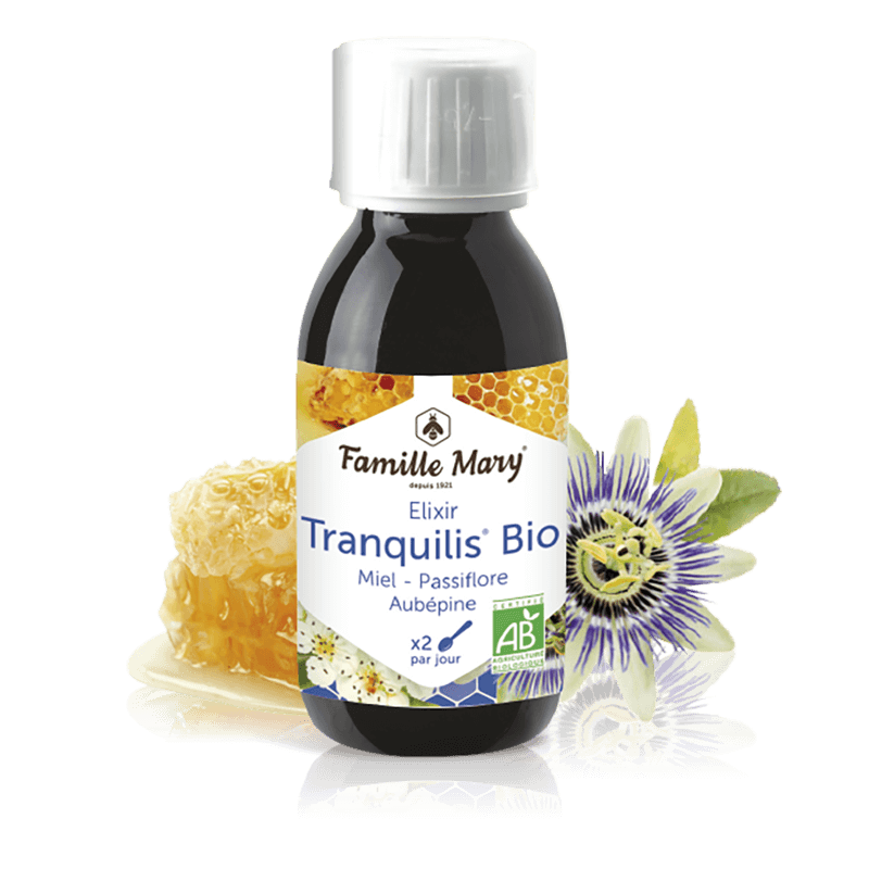 Elixir Tranquilis® Bio Miel Passiflore Aubépine е изцяло натурален продукт от екологично био земеделие. Зад качеството му застава Famille Mary® – френска семейна компания с история от 1921 г., която започва с…дядовата мелница в сърцето на регион Анжу в долината на Лоара. С днешна дата фамилната памет е съхранена чрез медоносната къща Beau-Rivage, където Famille Mary произвежда и предлага богат избор от мед и природни продукти, а качеството им е гарантирано със стриктен лабораторен анализ и контрол.