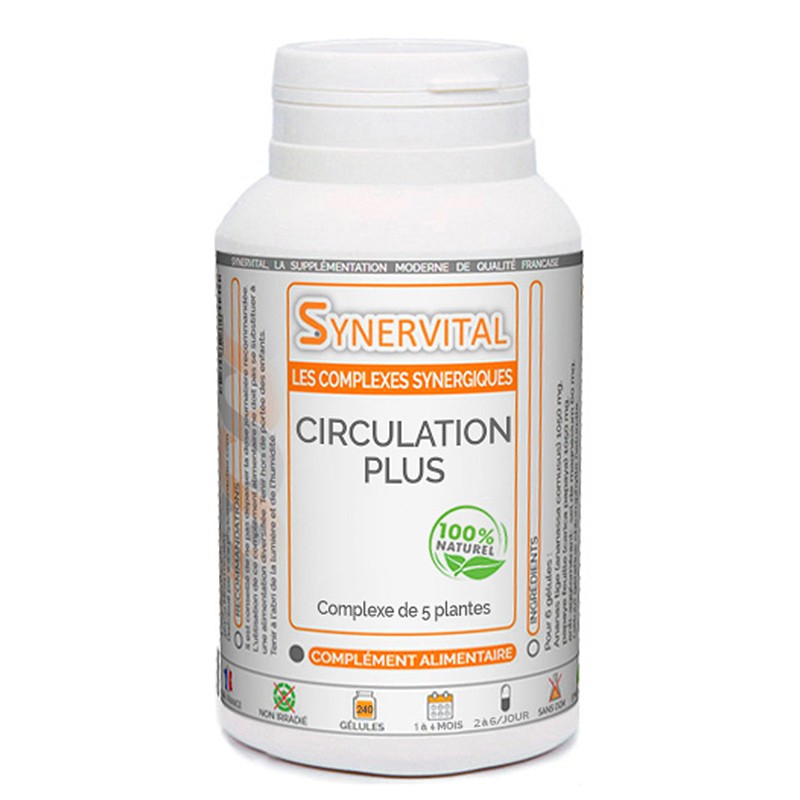 В формулата Circulation Plus, френската компания PhytoMoinsCher използва свойствата на 5 растения, комбинирайки техните синергични ефекти за оптимална ефективно кръвообращение и силна кръвоносна система. Хранителната добавка съдържа екстракти от Червена лоза, Гинко Билоба, Кипарис, Хамамелис , Бодлив залист и може да осигури някои от следните ползи за здравето: