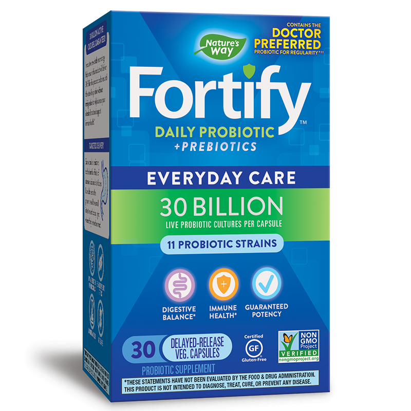 Пробиотик + пребиотици – ежедневна грижа – Fortify Probiotic Everyday Care, 30 млрд. активни пробиотици, 30 капсули