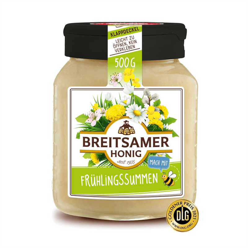 Frühlingssummen, cremig, blüten Honig – Пролетен кремообразен цветен мед на германската компания Breitsamer Honig™ e природен дар от първия медосбор на годината, от първата реколта на кошерите. Затова и този пчелен еликсир е нещо наистина специално.