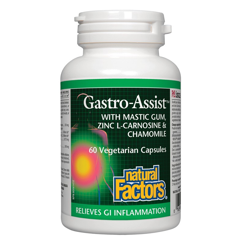 Gastro Assist® (Мастикс, Цинков Л-карнозин, Лайка) на Natural Factors е синергична формула, която ефикасно облекчава симптомите на възпалителни състояния на стомашно-чревния тракт.
