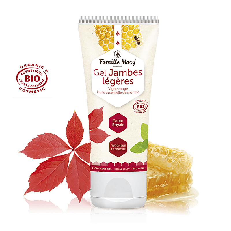 Доверете се на ефективното действие на изпитани природни продукти, които доказано подобряват кръвообращението, повдигат тонуса на стените на капилярите, намаляват отока и имат облекчаващ и охлаждащ ефект. Не пренебрегвайте ефектите на флорална вода от метличина, етерично масло от мента, пчелно млечице, дяволски нокът, червена лоза и гел от алое вера, които ще тонизират крайниците, подложени на всекидневно натоварване и често пренебрегвани в грижата за тях. Към тях за подсилване на действието е добавен екстракт от хамамелис, сладка детелина, масла от камфор, лавандула, евкалипт, бяло чаено дърво. Именно, за да осигури свобода и лекота на движение, Famille Mary създаде богатата формула на Gel jambes legeres bio – Релаксиращ гел за „леки“ крака, като 99 % от съставките на продукта са естествени, а 98, 1 % от растителните вещества са добити от биологично земеделие.