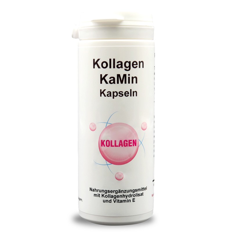 Капсулите Kollagen KaMin съдържат специално разработен колагенов хидролизат, който се усвоява отлично от организма. Аминокиселините, съдържащи се в колагеновия хидролизат, са естествени компоненти на кожата, косата, ноктите, костите, съединителната тъкан и ставния хрущял. Те стимулират клетките на тялото да образуват хрущялна тъкан. Витамин Е помага за защитата на клетките от оксидативен стрес.